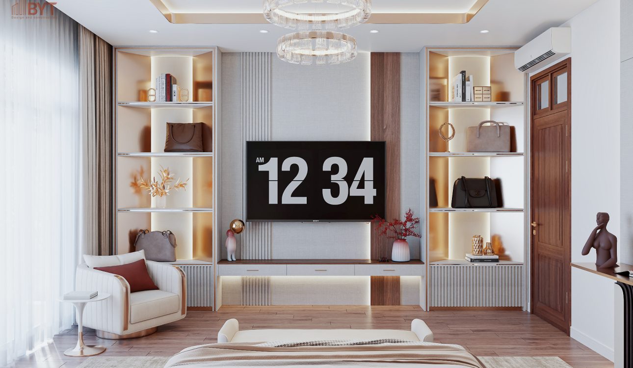 Bên cạnh đó, thiết kế nội thất âm tường cũng là một giải pháp hiệu quả trong việc tối ưu không gian. Tủ quần áo, kệ sách hoặc tủ bếp được thiết kế âm vào tường giúp giảm diện tích chiếm chỗ và tạo cảm giác căn phòng rộng hơn. Đây là lựa chọn phù hợp với các căn hộ có diện tích nhỏ hoặc những không gian cần sự gọn gàng và hiện đại.