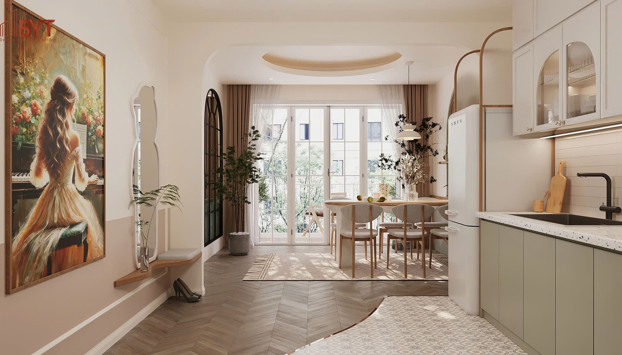 Gam màu trung tính giúp không gian trông rộng hơn, sáng hơn và dễ kết hợp với các điểm nhấn như tranh, đèn, cây xanh hoặc vật liệu đặc biệt. Đây là lựa chọn lý tưởng cho cả chung cư, nhà phố lẫn biệt thự.
